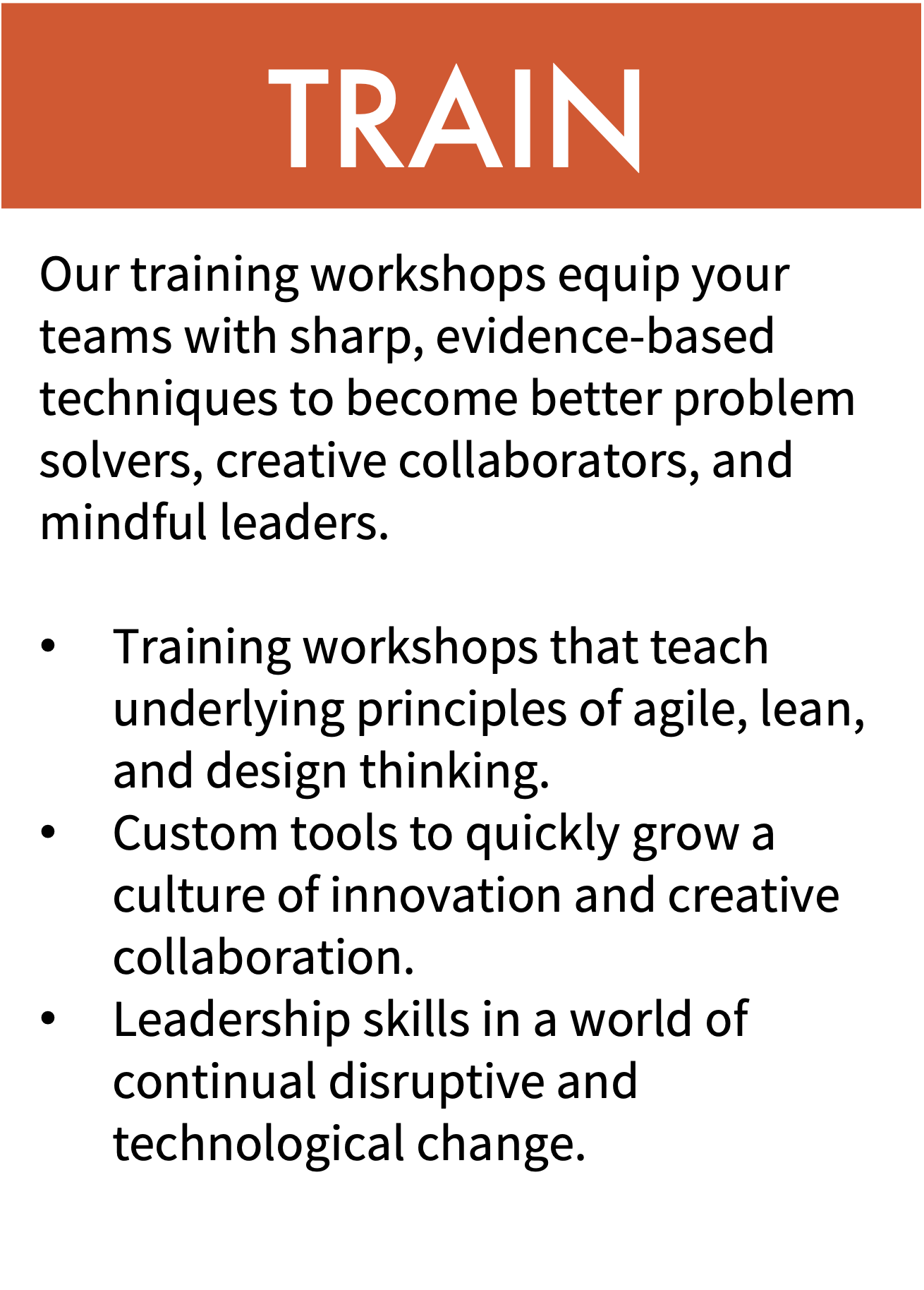 We help them identify new opportunities for positive change, then we provide a framework for developing new concepts & business case, and finally we equip them with the skills to lead the charge.